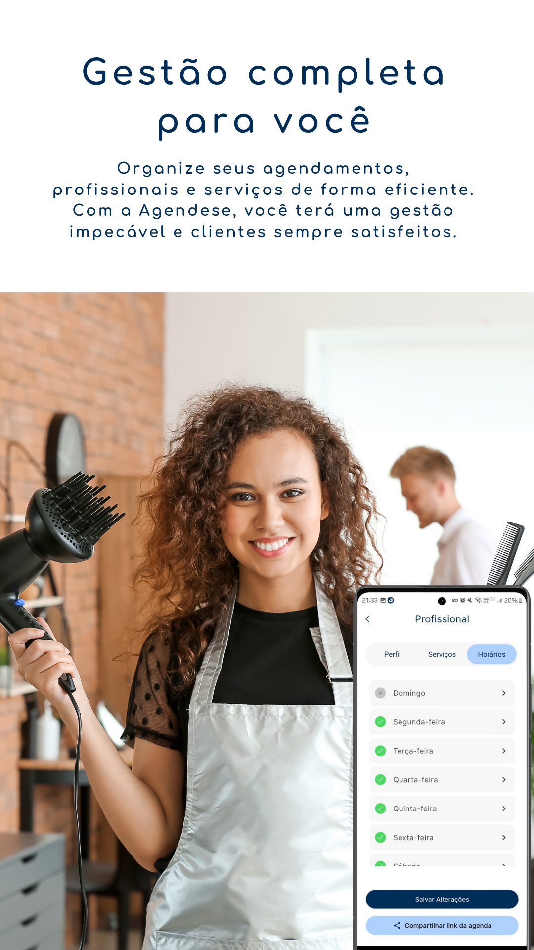 Você pode dar acesso dos agendamentos a cada profissional que trabalha em seus estabelecimento!