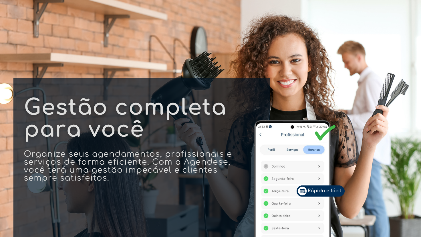 Todos os agendamentos ficam disponíveis e visíveis para você através do app exclusivo da Agendese. Acompanhe em tempo real toda a sua agenda com facilidade.